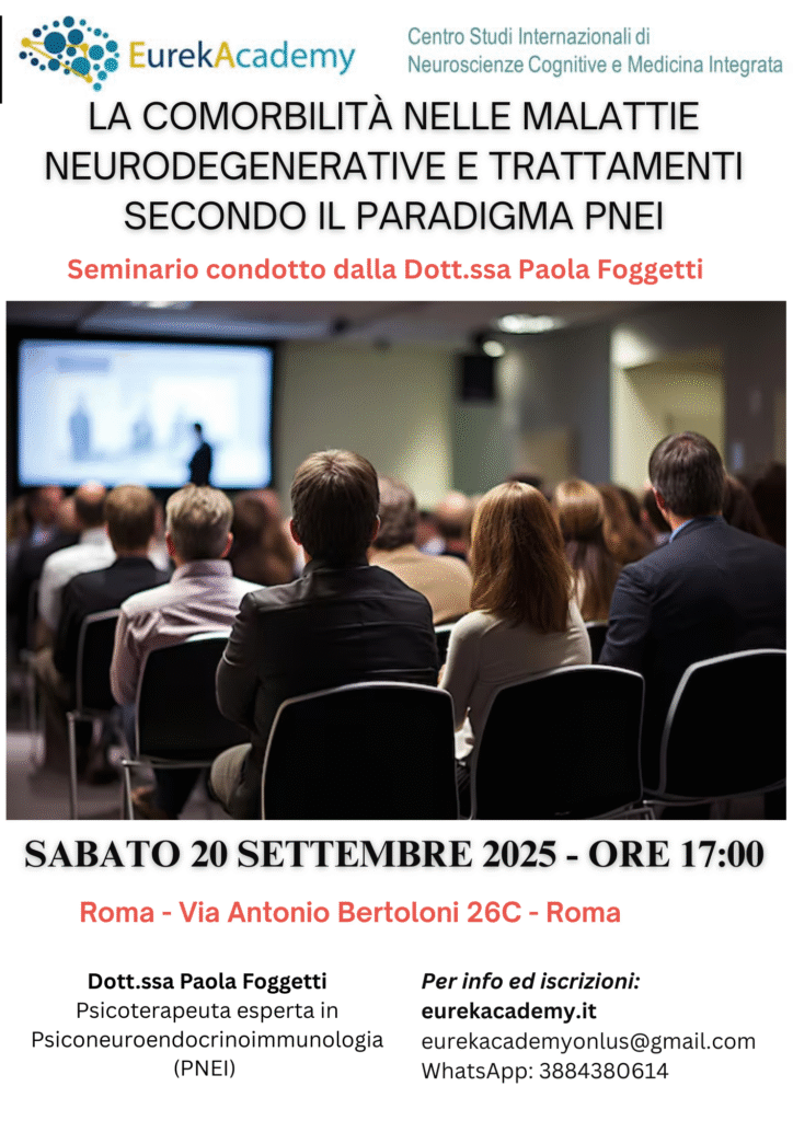 Psicoterapeuta con lunga esperienza clinica e di ricerca, da anni impegnata nello studio delle patologie complesse e dei disturbi trauma-correlati. Grazie al suo approccio integrato mente-corpo e alla prospettiva PNEI, ci guiderà a comprendere come la comorbilità nelle malattie neurodegenerative possa essere affrontata attraverso nuovi paradigmi terapeutici che uniscono neuroscienze, psicoterapia e medicina integrata.